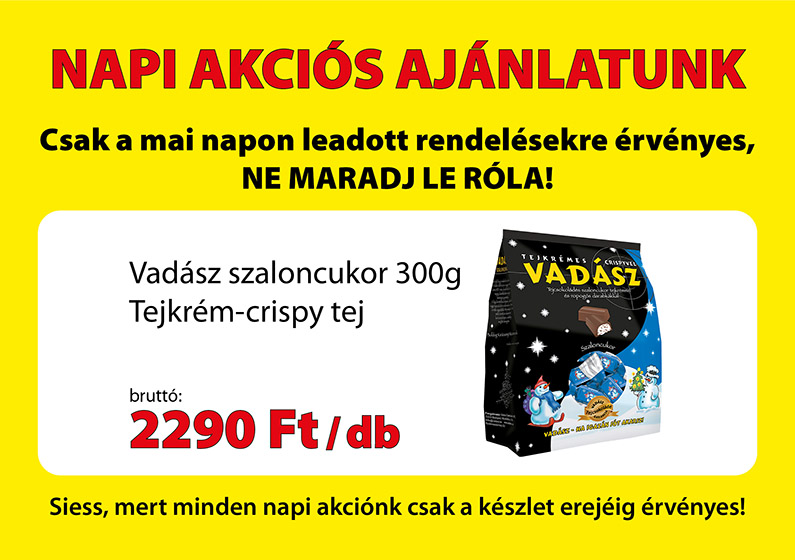 A gyors piaci változások miatt a termékek ára a hónap során sajnos változhat, kérjük rendeléskor tájékozódjanak az aktuális árakról webáruházunkban, vagy üzletkötőinknél. Regisztrált vevőink az oldalon mindig az aktuális bruttó árakat látják.